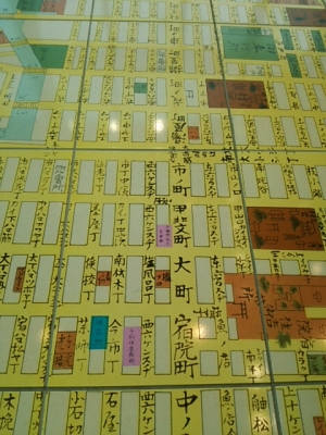 こちらは、利晶の杜エントランスホール床に描かれた泉州堺絵地図。