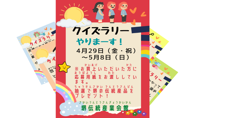 参加賞付きで、さらに、全問正解の方10名さまに抽選で、堺の伝統産品の詰め合わせをプレゼントいたします。🎁✨